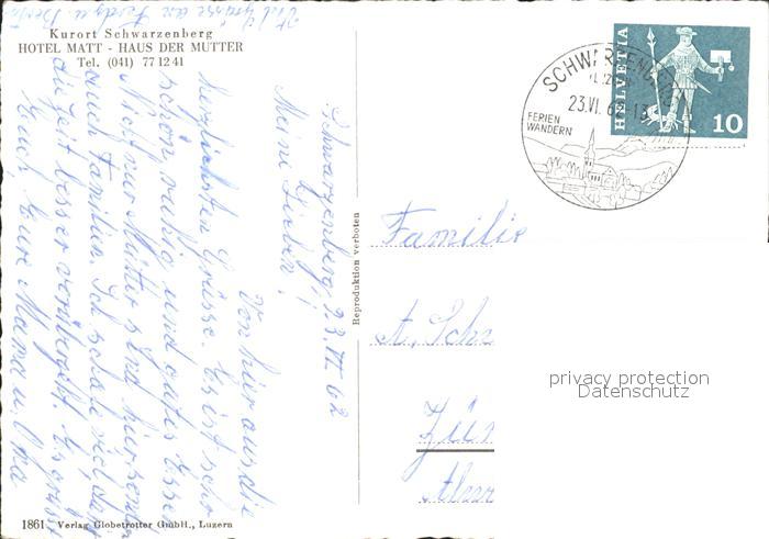 11649251 alte Postkarte Schwarzenberg LU Kurort Hotell Matt Haus der Mutter postalisch gelaufen KatCode: 11470120385888