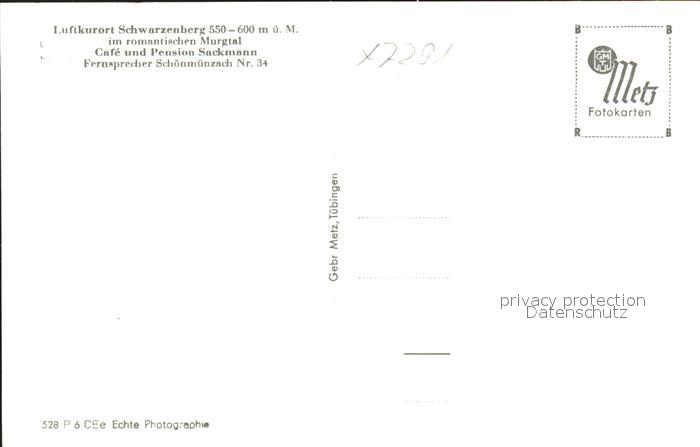 41768269 Schwarzenberg Murgtal Cafe Pension Sackmann Teich Kirche Luftkurort postalisch nicht gelaufen Erhaltung siehe scans KatCode: 11110008237004