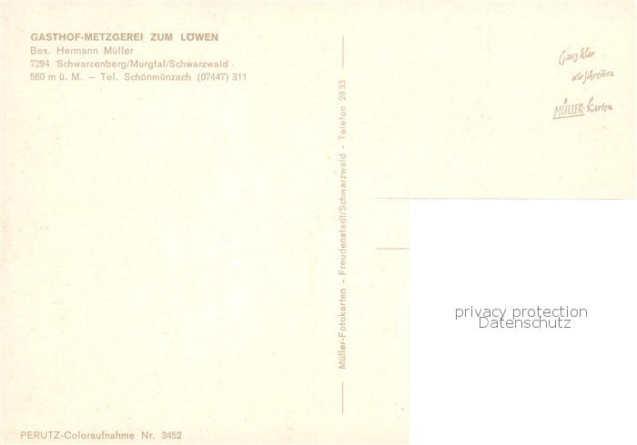 73844737 Schwarzenberg Murgtal Gasthof Metzgerei zum Loewen Gastraeume Terrasse postalisch nicht gelaufen Erhaltung siehe scans [WerneD78] KatCode: 11110008237004
