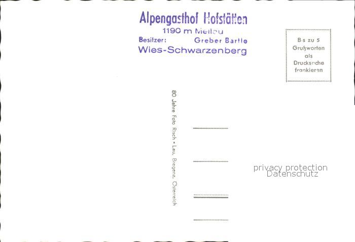 72228223 Schwarzenberg Vorarlberg Gasthof Hofstetten Wies postalisch nicht gelaufen Erhaltung siehe scans KatCode: 11390341080236