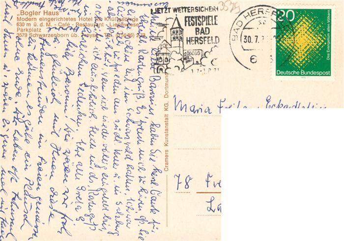 73935311 alte Postkarte Schwarzenborn Knuell Bogler Haus Terrasse Seepartie Felsen postalisch gelaufen Erhaltung siehe scans [FriedD77] KatCode: 11110006634023