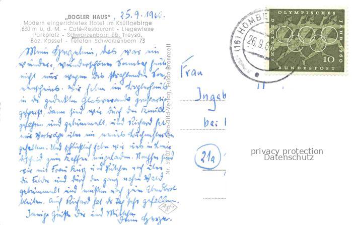 74099459 alte Postkarte Schwarzenborn Knuell Treysa Hessen Bogler Haus postalisch gelaufen Erhaltung siehe scans [WerneD78] KatCode: 11110006634023