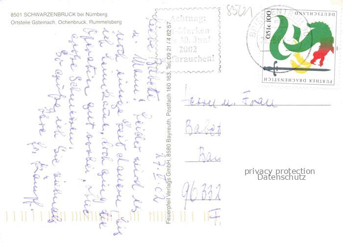 74049084 alte Postkarte Schwarzenbruck Bayern Ortsteile Gsteinach Ochbruck Rummelsberg postalisch gelaufen Erhaltung siehe scans [FriedD77] KatCode: 11110009574157
