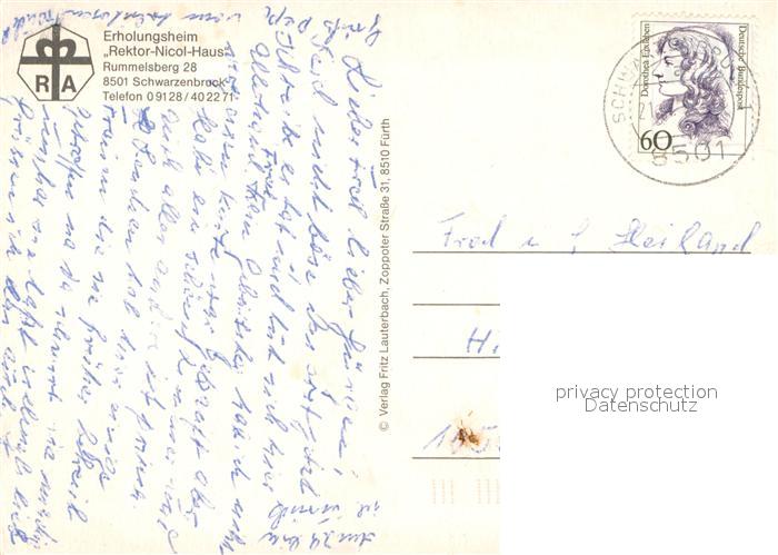 73666330 alte Postkarte Schwarzenbruck Erholungsheim Rektor-Nicol-Haus postalisch gelaufen Erhaltung siehe scans [LiesaD40] KatCode: 11110009574157