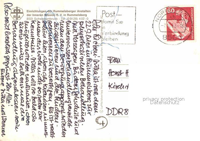 72856856 alte Postkarte Schwarzenbruck Fliegeraufnahme Einrichtungen der Rummelsberger Anstalten postalisch gelaufen Erhaltung siehe scans [AndreD76] KatCode: 11110009574157