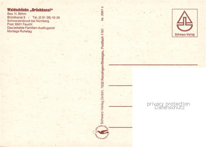 73662551 Schwarzenbruck Waldschaenke Brueckkanal Gaststaette Bruecke postalisch nicht gelaufen Erhaltung siehe scans [FriedD77] KatCode: 11110009574157