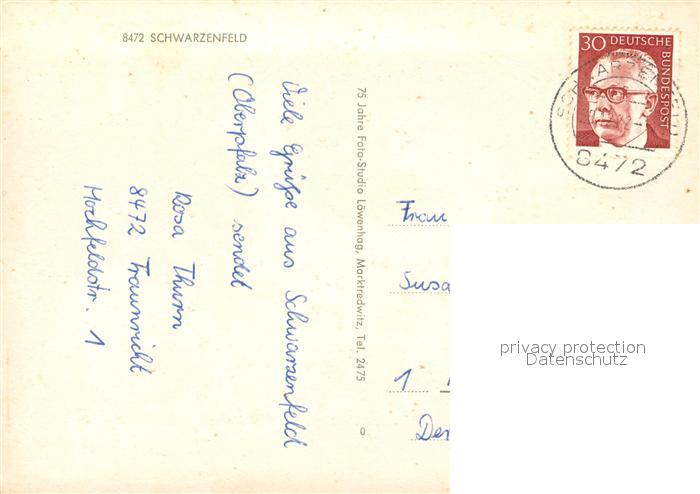 73214922 alte Postkarte Schwarzenfeld Oberpfalz Stadtpanorama Schloss Schule Denkmal Kreuz postalisch gelaufen Erhaltung siehe scans [FriedD77] KatCode: 11110009376163