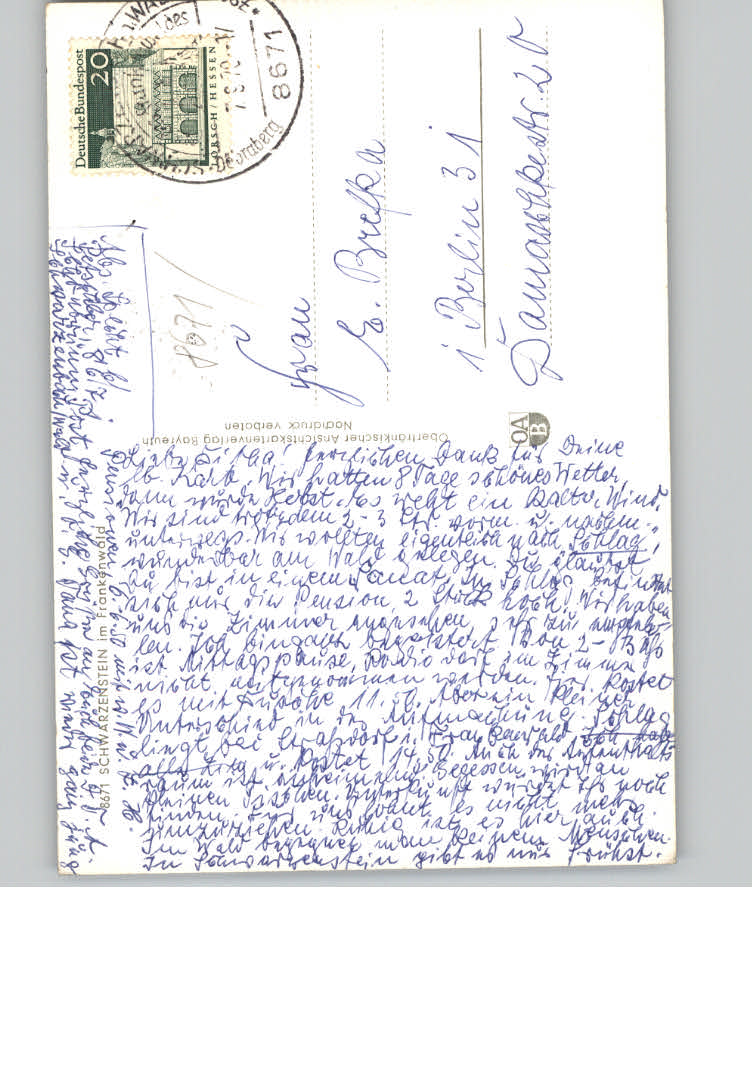 31169736 Schwarzenstein Wald postalisch nicht gelaufen KatCode: 11110009475169