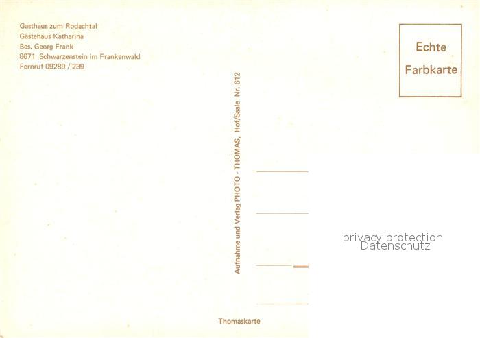 73086140 Schwarzenstein Wald Gasthaus zum Rodachtal Gaestehaus Katharina Panorama postalisch nicht gelaufen Erhaltung siehe scans [KathaD81] KatCode: 11110009475169