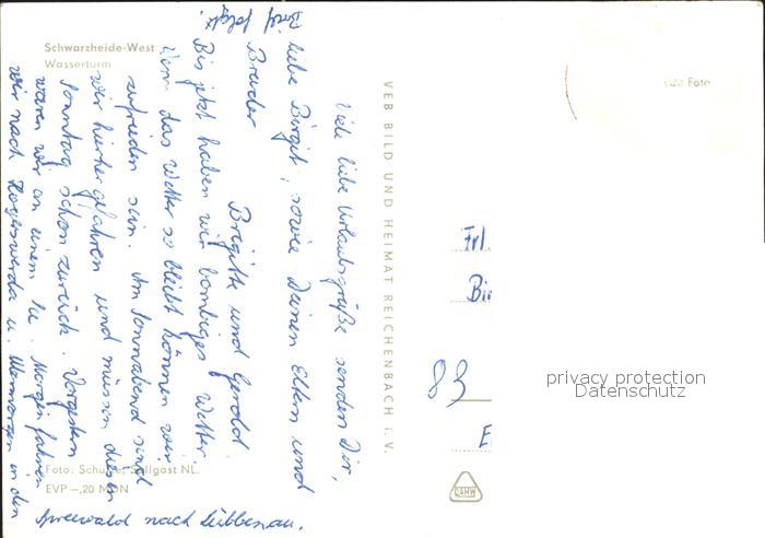 71980187 alte Postkarte Schwarzheide Wasserturm postalisch gelaufen Erhaltung siehe scans KatCode: 11110012066296