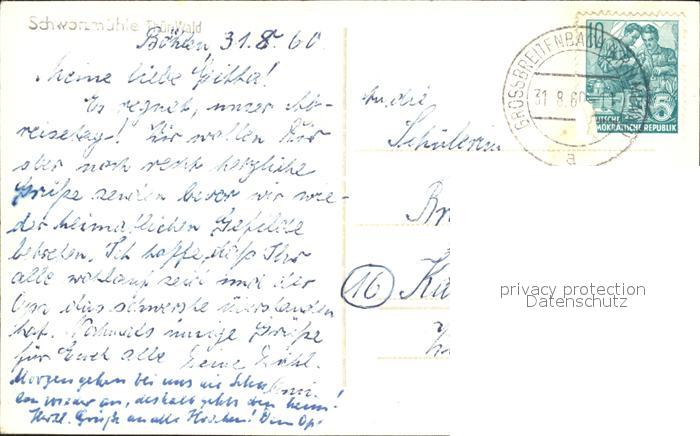 72043250 alte Postkarte Schwarzmuehle postalisch gelaufen Erhaltung siehe scans KatCode: 11110016073056