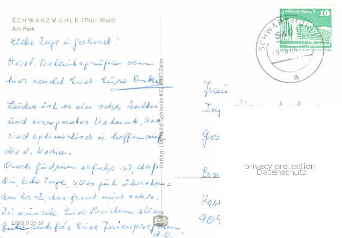 72704135 alte Postkarte Schwarzmuehle Am Park postalisch gelaufen Erhaltung siehe scans [AndreD76] KatCode: 11110016073056