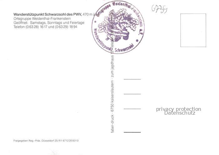 74006893 Schwarzsohl Forsthaus Elmstein Rheinland-Pfalz Wanderstuetztpunkt Schwarzsohl postalisch nicht gelaufen Fliegeraufnahme Erhaltung siehe scans [WerneD78] KatCode: 11110007332014