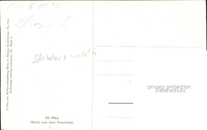 41610683 Schwarzwald Künstlerkarte Bauern Feldarbeit Landwirtschaft im Heu KatCode 22440000003700