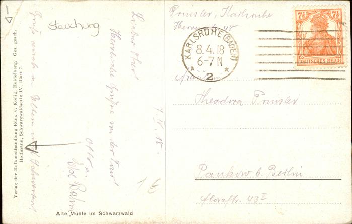 Schwarzwaldhaeuser Mühle Künstler H. Hoffmann