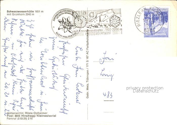 72137923 alte Postkarte Schwarzwasserhuette mit Gruenhorn Allgaeuer Alpen postalisch gelaufen Erhaltung siehe scans KatCode: 11390