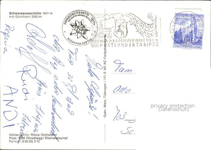 72245004 alte Postkarte Schwarzwasserhuette mit Gruenhorn postalisch gelaufen Erhaltung siehe scans KatCode: 11390