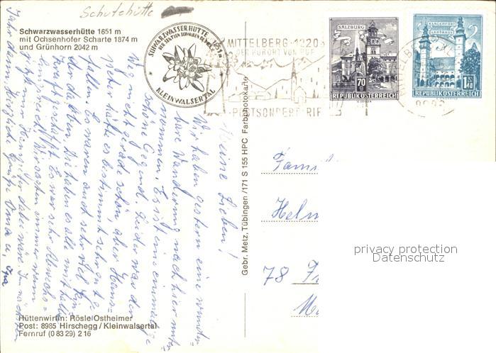 71566575 alte Postkarte Schwarzwasserhuette mit Ochsenhofer Scharte und Gruenhorn Schutzhuette Allgaeuer Alpen postalisch gelaufen Erhaltung siehe scans KatCode: 11390