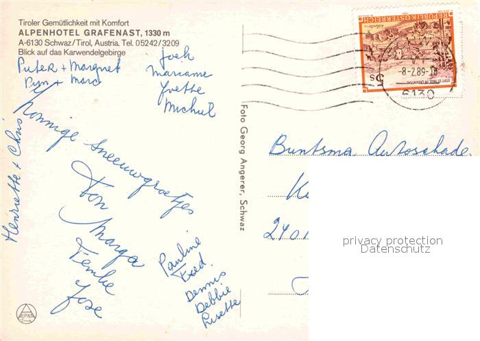 72898356 alte Postkarte Schwaz Tirol Alpenhotel Grafenast postalisch gelaufen Erhaltung siehe scans [AndreD76] KatCode: 11390335070926