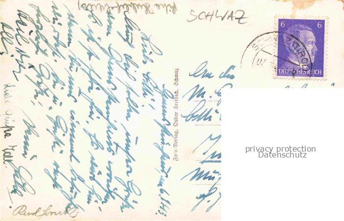 34142881 alte Postkarte Schwaz Tirol AT Berghaus Alpenpanorama postalisch gelaufen Erhaltung siehe scans [FriedD77] KatCode: 11390335070926