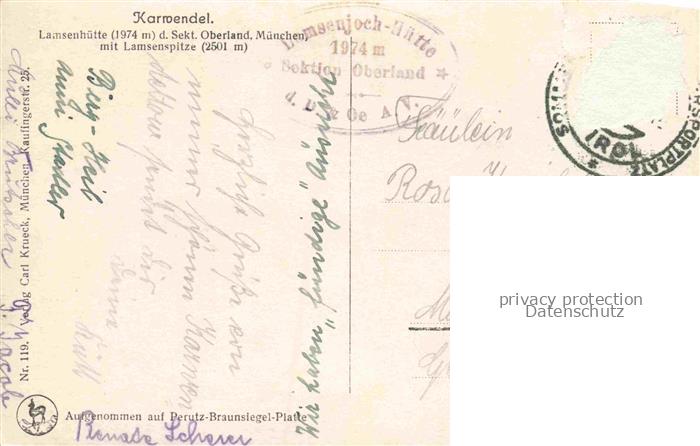 74150502 alte Postkarte Schwaz Tirol AT Lamsenhuette mit Lamsenspitze Karwendelgebirge postalisch gelaufen Erhaltung siehe scans [FriedD77] KatCode: 11390335070926