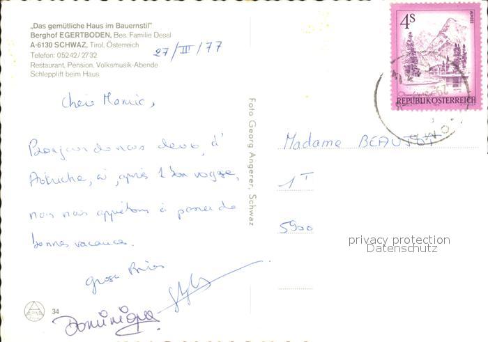 72410657 alte Postkarte Schwaz Tirol Berghof Egertboden postalisch gelaufen Erhaltung siehe scans KatCode: 11390335070926