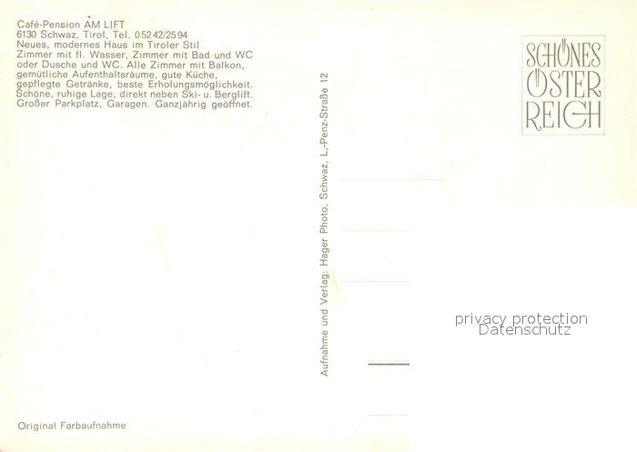 73613109 Schwaz Tirol Cafe Pension Am Lift postalisch nicht gelaufen Erhaltung siehe scans [FriedD77] KatCode: 11390335070926