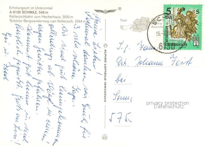 73653800 alte Postkarte Schwaz Tirol Erholungsort im Unterinntal Schloss Freundsberg Fliegeraufnahme postalisch gelaufen Erhaltung siehe scans [FriedD77] KatCode: 11390335070926