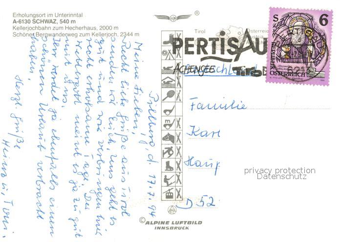 73161594 alte Postkarte Schwaz Tirol Fliegeraufnahme Kellerjoch postalisch gelaufen Erhaltung siehe scans [KathaD81] KatCode: 11390335070926