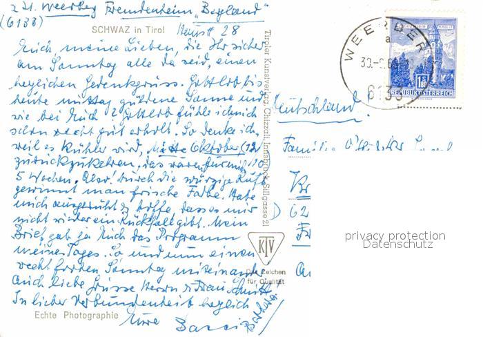 72799372 alte Postkarte Schwaz Tirol Kirche postalisch gelaufen Erhaltung siehe scans [AndreD76] KatCode: 11390335070926