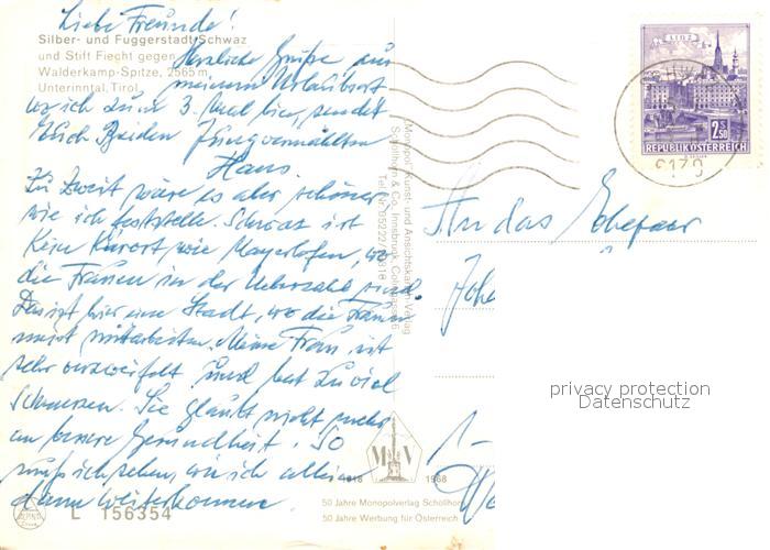 73156958 alte Postkarte Schwaz Tirol Silber- und Fuggerstadt postalisch gelaufen Erhaltung siehe scans [LiesaD40] KatCode: 11390335070926