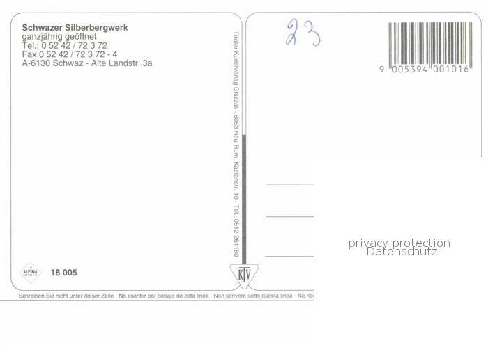 72875103 Schwaz Tirol Silberbergwerk postalisch nicht gelaufen Erhaltung siehe scans [FriedD77] KatCode: 11390335070926