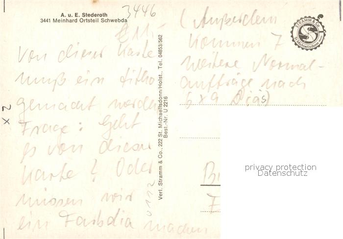 73085751 Schwebda Werra Kloster Schloss Sorgenhaus Werratal postalisch nicht gelaufen Erhaltung siehe scans [FriedD77] KatCode: 11110006636007