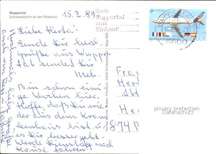 alte Postkarte Schwebebahn Rosenau Wuppertal postalisch gelaufen Erhaltung siehe scans