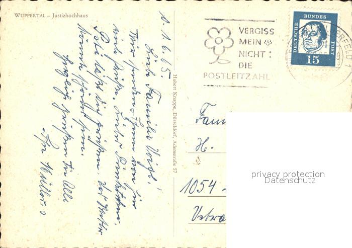 alte Postkarte Schwebebahn Wuppertal Justizhochhaus postalisch gelaufen Erhaltung siehe scans