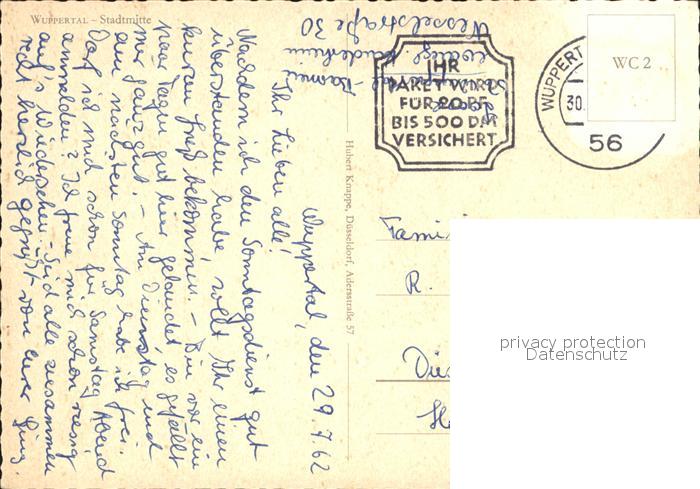 alte Postkarte Schwebebahn Wuppertal Stadtmitte postalisch gelaufen Erhaltung siehe scans