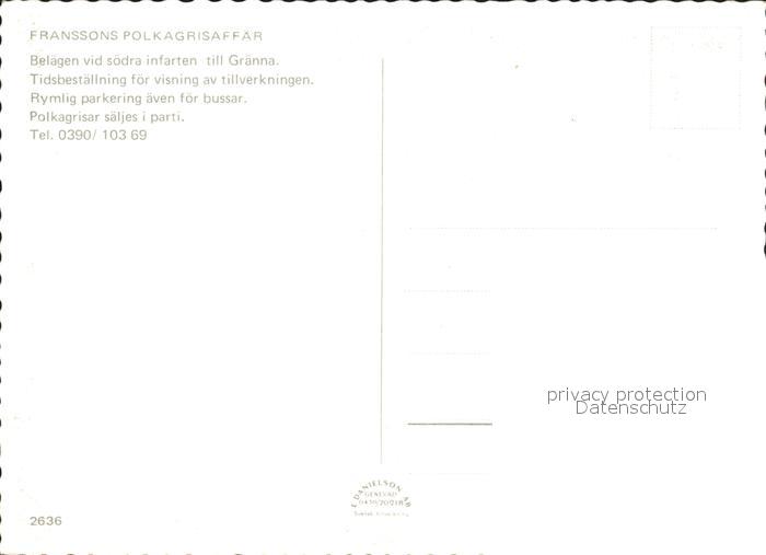 Schweden Baeckerei Franssons Polkagrisaffar postalisch nicht gelaufen Erhaltung siehe scans