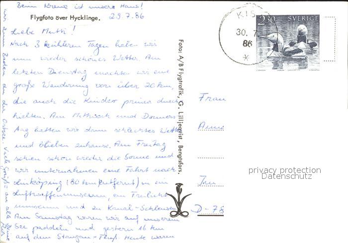 old postcard Schweden Fliegeraufnahme oever Hycklinge postalisch gelaufen Erhaltung siehe scans [LiesaD40 kt120box]