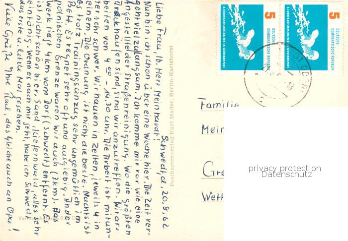 73869443 alte Postkarte Schwedt Oder Vierradener Strasse Franzoesische Kirche Katharinen Kirche Ernst Thaelmann Strasse Ehem Amtsgericht postalisch gelaufen Erhaltung siehe scans [WerneD78] KatCode: 11110012073532