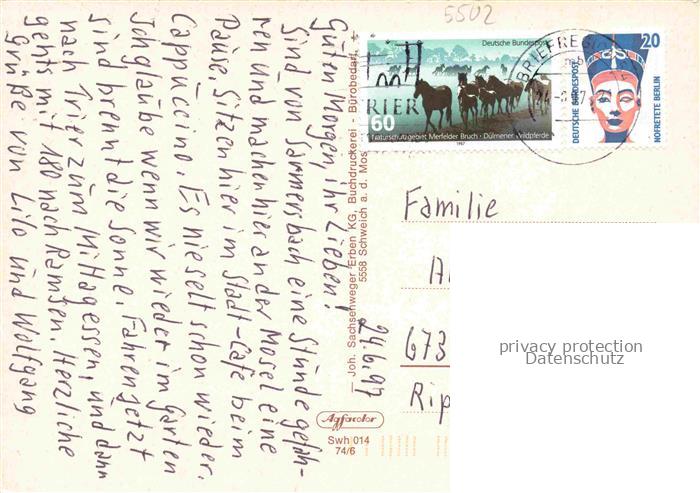 74053431 alte Postkarte Schweich Mosel Altersheim St. Josef Statue Kapelle Kindergarten postalisch gelaufen Erhaltung siehe scans [FriedD77] KatCode: 11110007235125