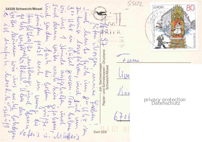 74053276 alte Postkarte Schweich Mosel Faehrturm Panorama Kreuzweg-Kapelle Erlebnisbad Synagoge postalisch gelaufen Erhaltung siehe scans [FriedD77] KatCode: 11110007235125
