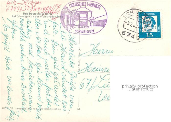 72995577 alte Postkarte Schweigen-Rechtenbach Deutsches Weintor postalisch gelaufen Erhaltung siehe scans [AndreD76] KatCode: 11110007337071