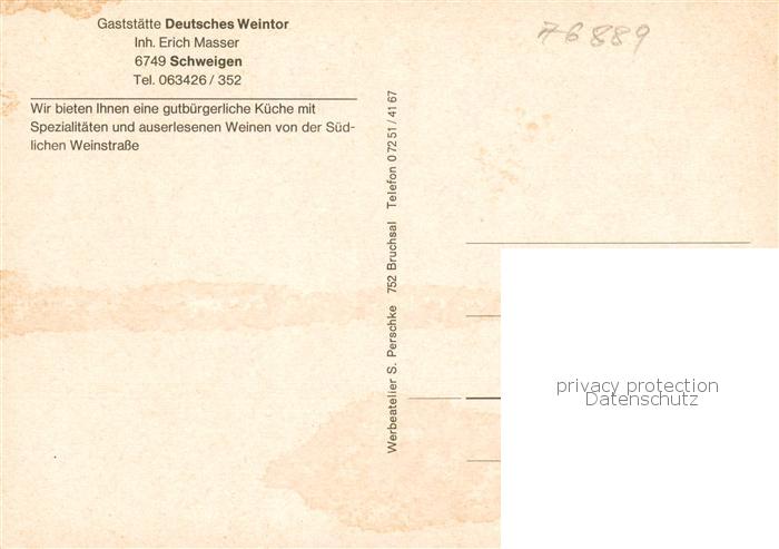 73865649 Schweigen-Rechtenbach Gaststaette Deutsches Weintor Gastraum postalisch nicht gelaufen Erhaltung siehe scans [FriedD77] KatCode: 11110007337071
