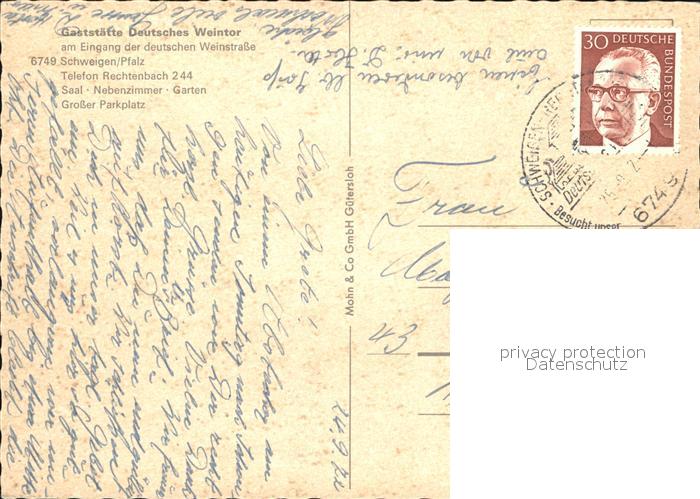 72495670 alte Postkarte Schweigen-Rechtenbach Restaurant Deutsches Weintor postalisch gelaufen Erhaltung siehe scans KatCode: 11110007337071