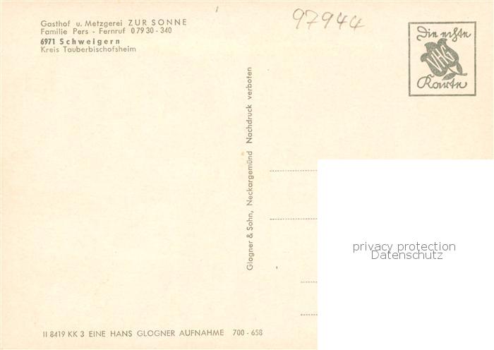 73867158 Schweigern Gasthof Metzgerei zur Sonne Restaurant Aussichtspunkt Panorama postalisch nicht gelaufen Erhaltung siehe scans [FriedD77] KatCode: 11110008128014