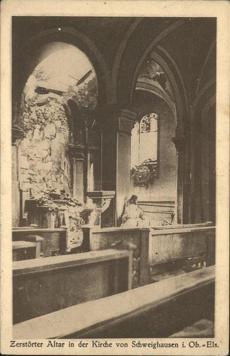 11206139 Schweighausen Elsass zerstörter Altar Kirche Schweighausen, Feldpost KatCode 11170067267458