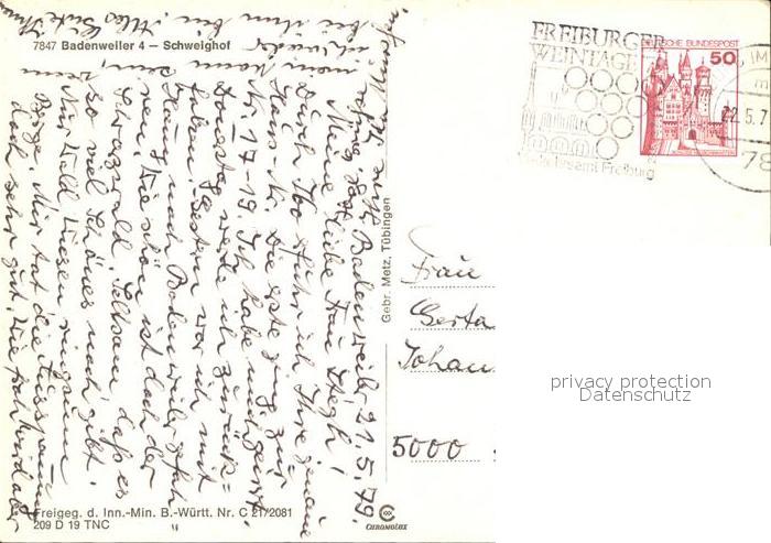 72496374 alte Postkarte Schweighof Badenweiler Fliegeraufnahme postalisch gelaufen Erhaltung siehe scans KatCode: 11110008315007