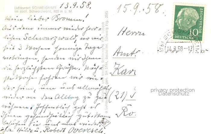 73762801 alte Postkarte Schweigmatt Fliegeraufnahme Panorama postalisch gelaufen Erhaltung siehe scans [LiesaD40] KatCode: 11110008336081