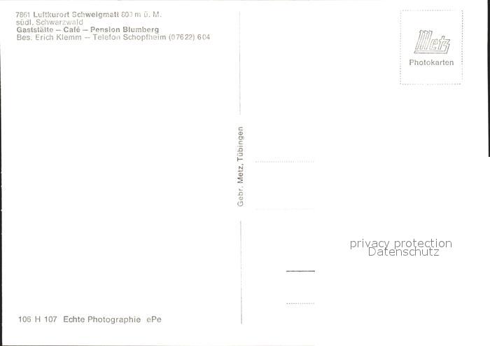 41784417 Schweigmatt Gaststaette Cafe Pension Blumberg postalisch nicht gelaufen Erhaltung siehe scans KatCode: 11110008336081