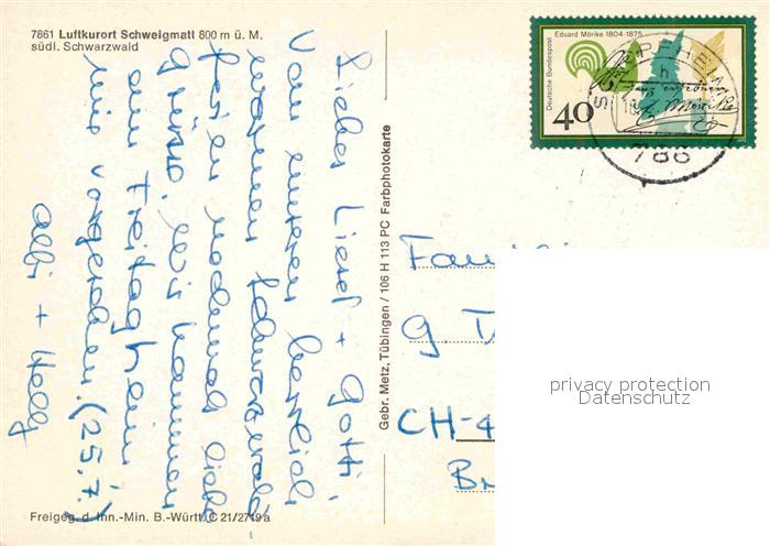 72736202 alte Postkarte Schweigmatt Luftkurort Schwarzwald Fliegeraufnahme postalisch gelaufen Erhaltung siehe scans [FriedD77] KatCode: 11110008336081